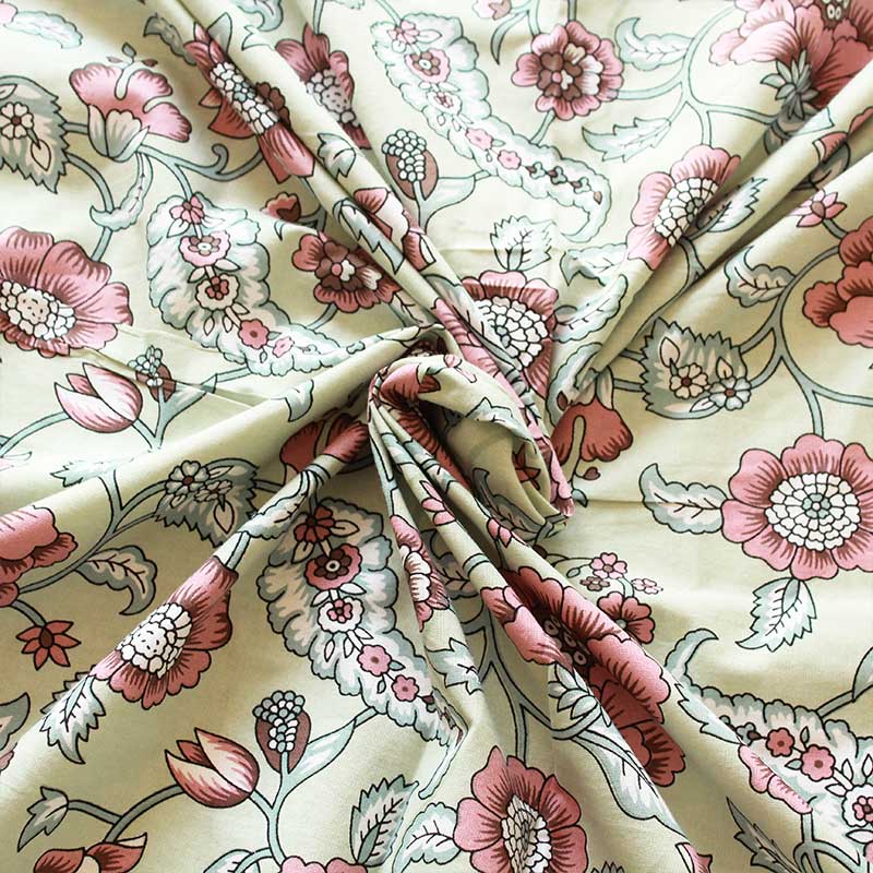 Light Pink and Light Green intricate floral pattern with a broad border, adds a natural cosy and serene vibe to your room.