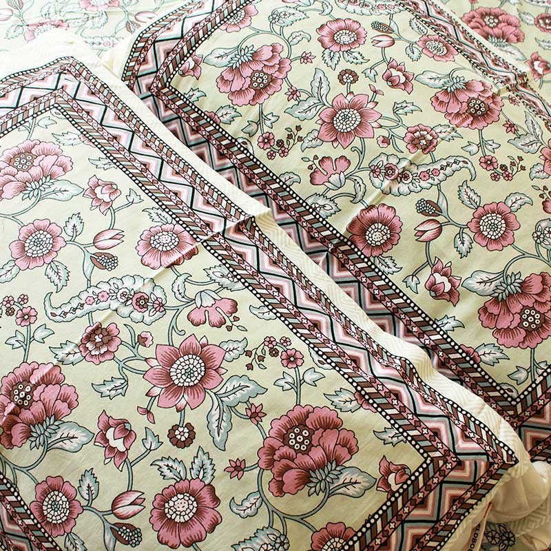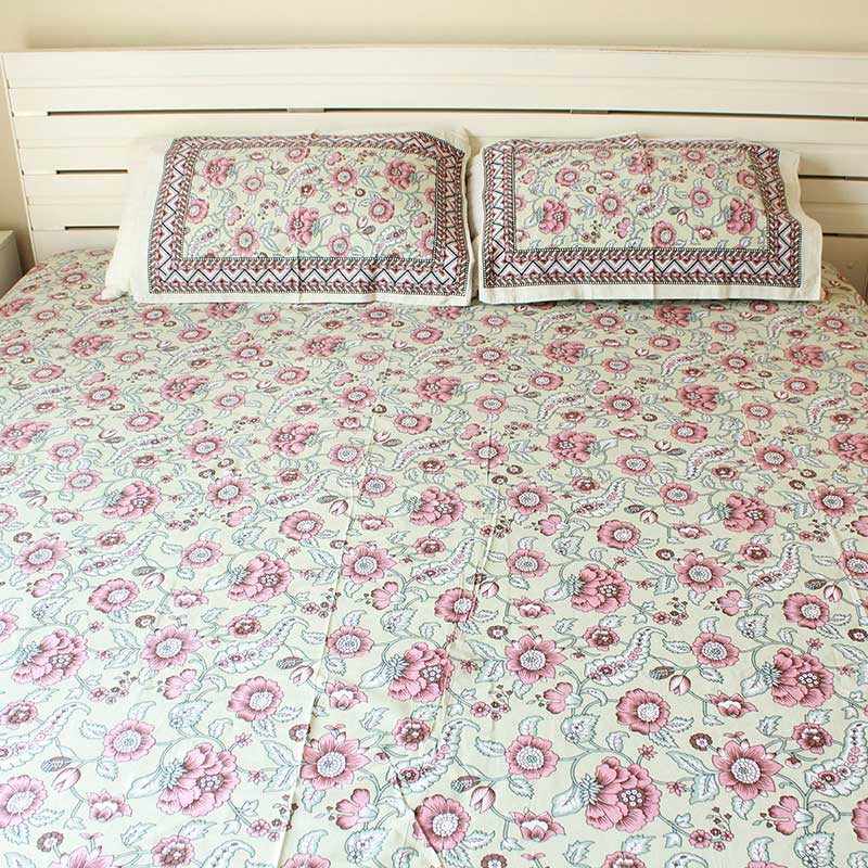 Bedsheet and 2 Pillow Covers – Light Pink and Light Green Printed